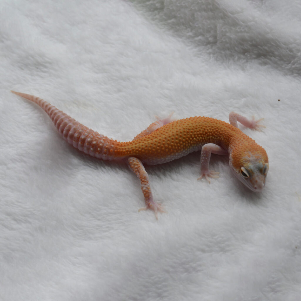 Linda is a truly rare Leopard Gecko and a standout example of our exclusive Typhoon Tangerine project. Her vivid orange coloration, clear pattern, and deep red eyes make her look almost unreal—like something out of a dream.