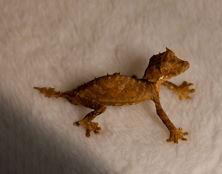 The spearpoint leaf-tailed gecko is essentially the northern counterpart of the satanic leaf-tailed gecko, with very similar care requirements. Although it can be found in slightly drier areas within its range, it still requires relatively high humidity compared to many other gecko species.
